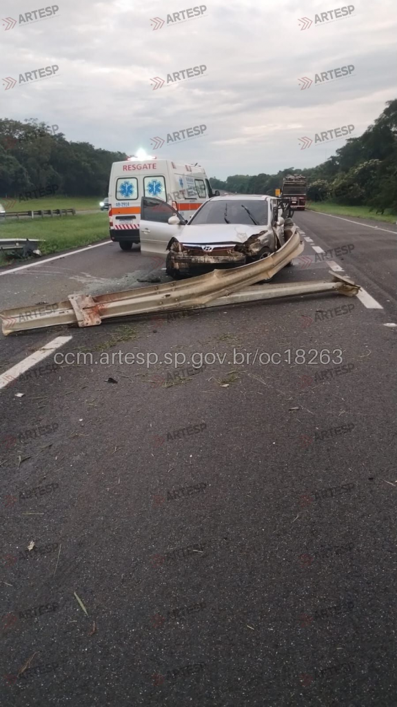 De acordo com informações do Centro de Controle Multimodal da ARTESP, o acidente aconteceu por volta das 5h15, no km 257,8 da pista sentido norte. Antes de atingir a defensa metálica, o carro ainda colidiu com uma placa de sinalização.