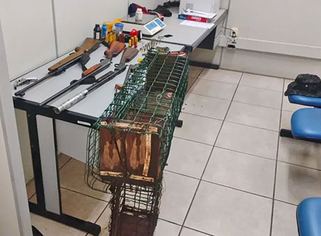 A ação foi realizada por equipes do 5º Batalhão de Polícia Militar Ambiental (2ª Cia / 1º Pelotão) após o recebimento de denúncia anônima, que informava que o caseiro da fazenda estaria caçando animais da fauna silvestre com o uso de armas de fogo e armadilhas.